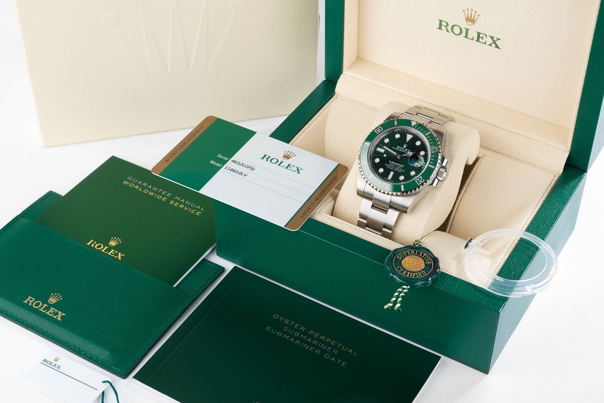 | Marque | Détails Marque Rolex Modèle Submariner Date Mouvement Remontage Automatique Année de fabrication 2020 Boîtier Acier Matière du bracelet Acier Diamètre 40 mm Cadran Vert Verre Verre saphir Chiffres du cadran Sans chiffres Couleur du bracelet Acier Boucle Plis Sexe Homme |